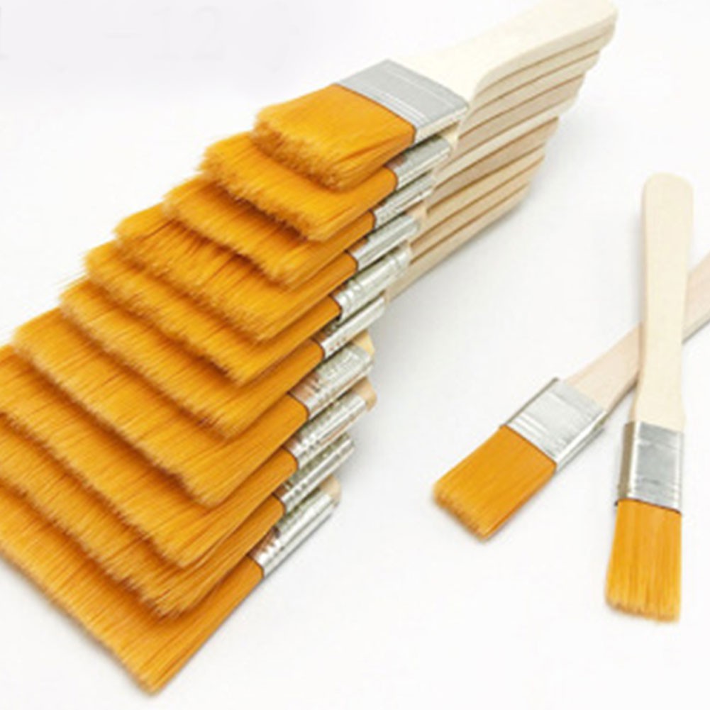 12 Kuas Cat Minyak Bahan Nylon Gagang Kayu Untuk Lukis Cat