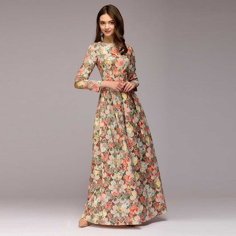 Floral Retro Dress Baju Jubah Long Beach Bohemia Party Night Maxi