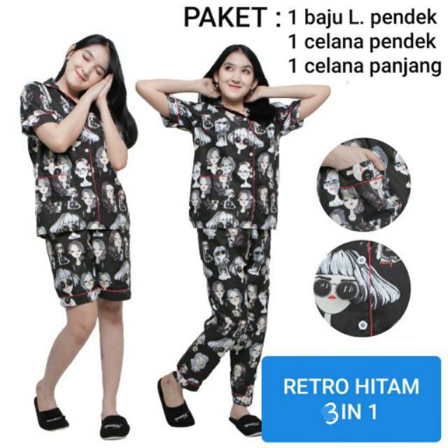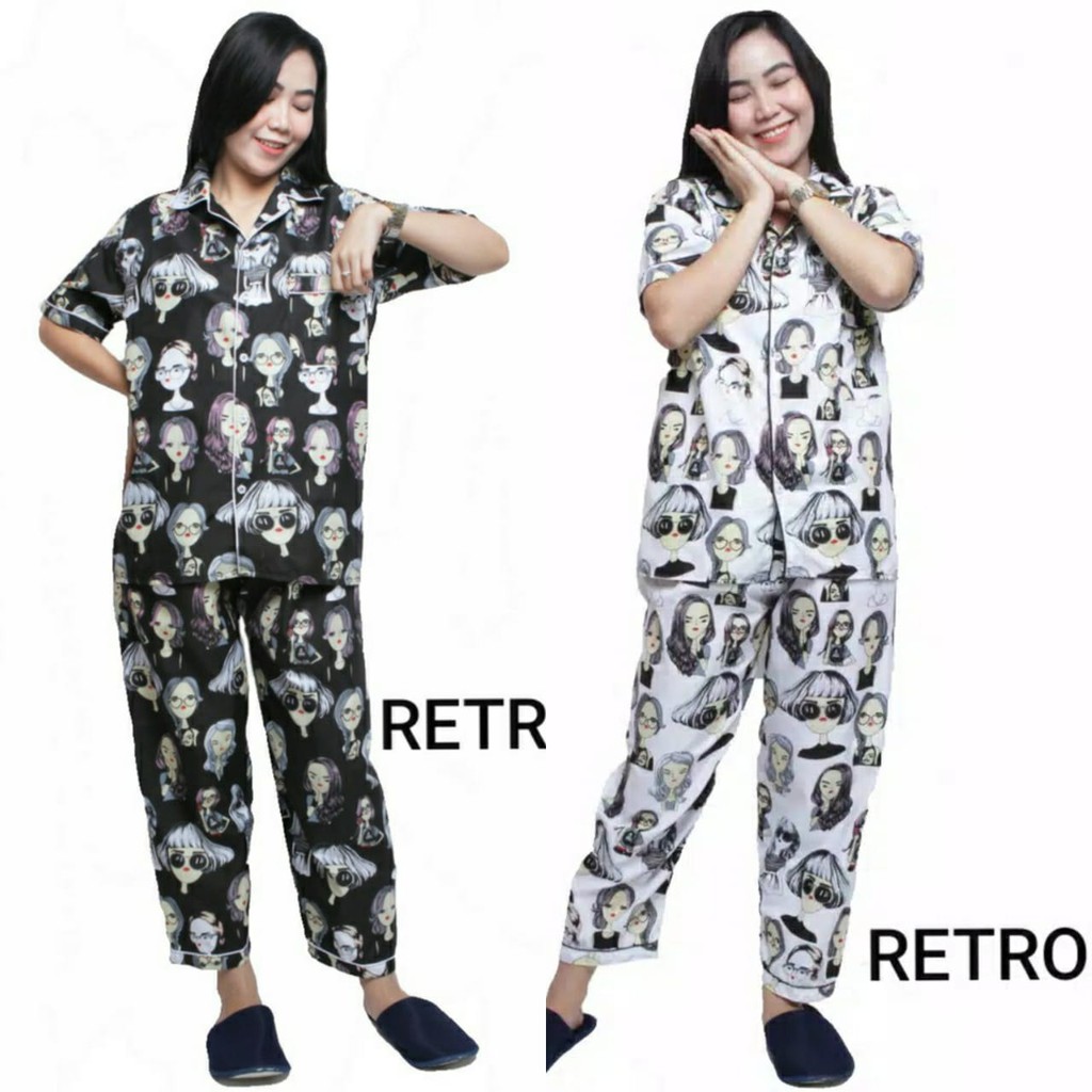 Sf Baju Tidur Piyama Fit Xl Motif Retro 3in1 Shopee Indonesia