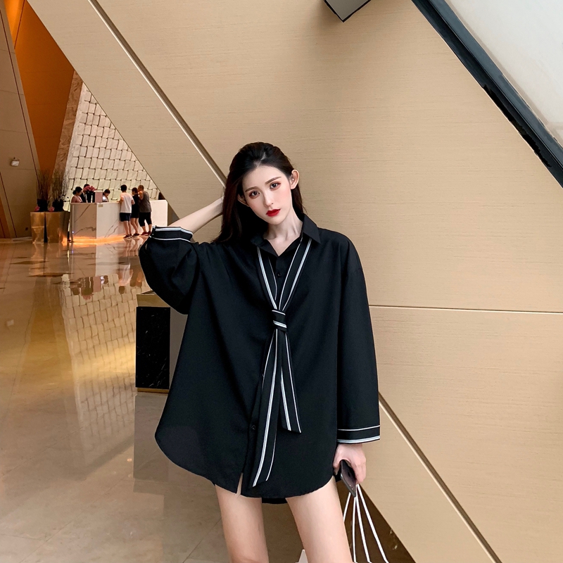 Fashion Butik Kemeja Gaya Hong Kong Wanita Retro Longgar Sembilan