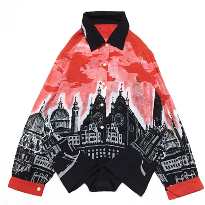Kemeja Vintage Yang Antik Retro Butik Baroque Sifon Lukisan Minyak