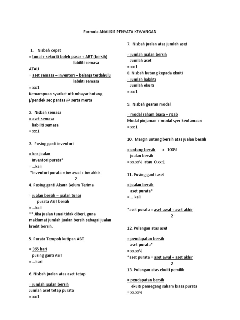 Formula Analisis Penyata Kewangan