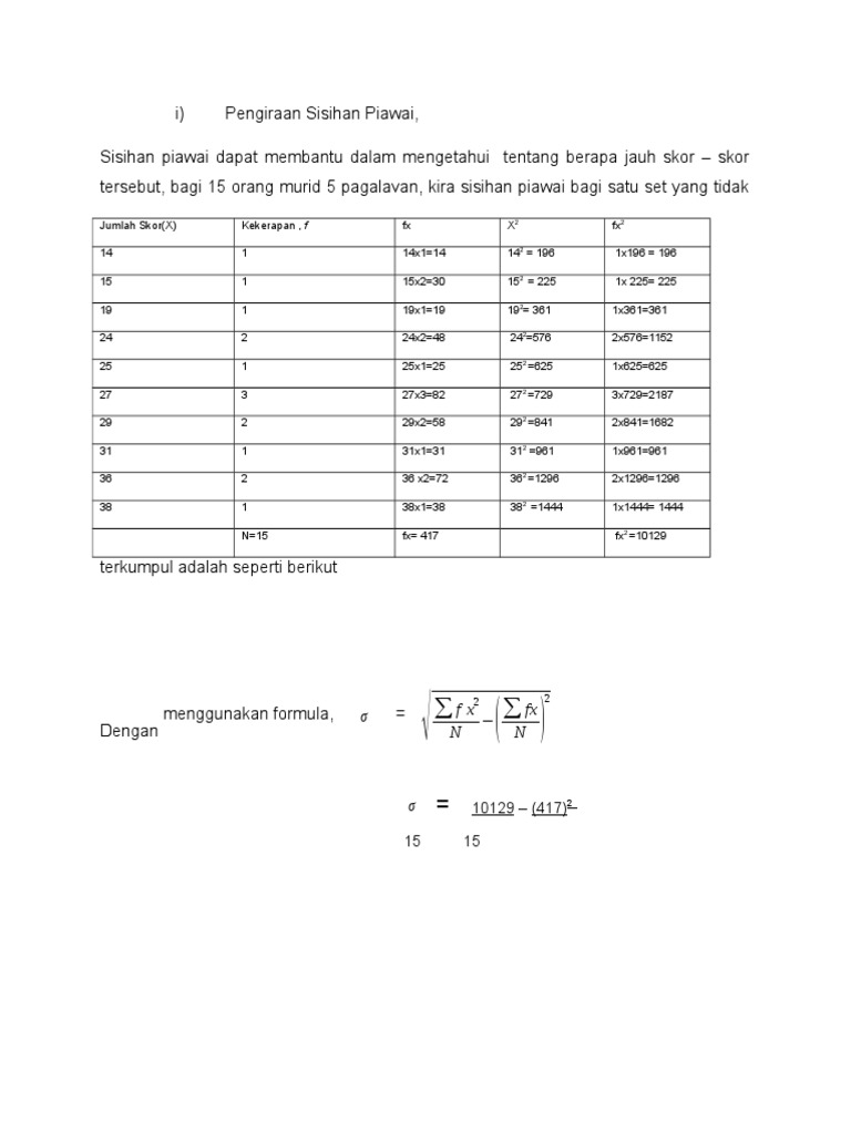 Pengiraan Sisihan Piawai