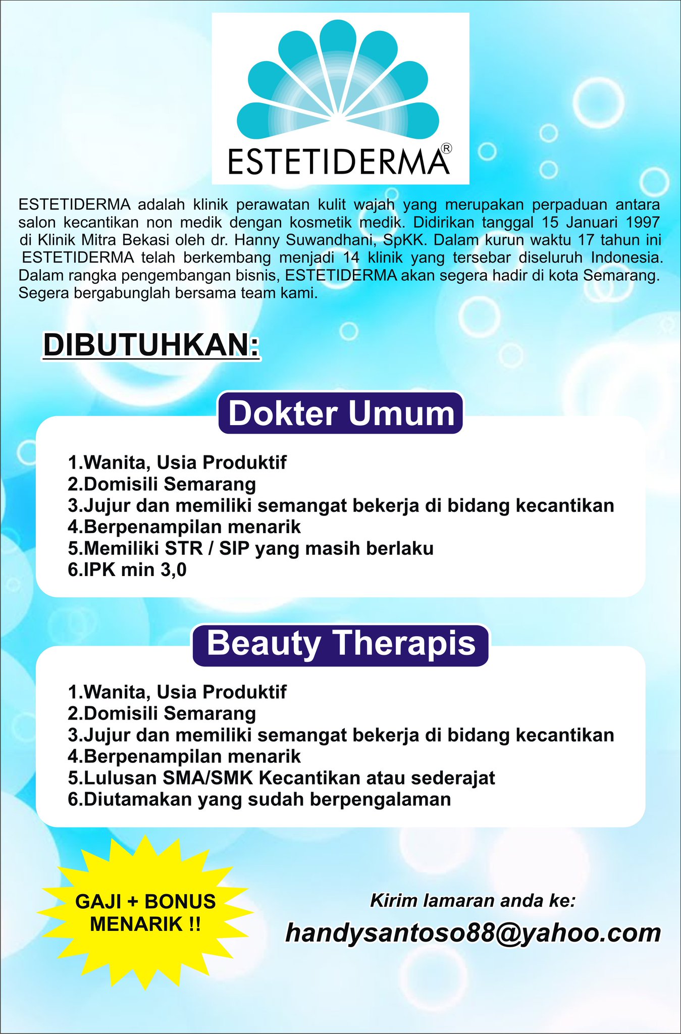 Lowongan Kerja Dokter Umum Di Estetiderma Semarang Gaji Dan