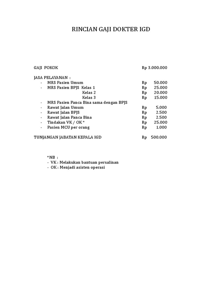Gaji dokter igd. Berikut ini penjelasan lengkapnya. 1 mampu melaksanakan kegiatan instalasi umum dan igd 2 mampu melaksanakan standar mutu medis instalasi umum dan igd 3. Memiliki surat tanda registrasi str dokter. Lebih disukai yang berpengalaman sebagai dokter praktek kecantikan kulit atau estetika.