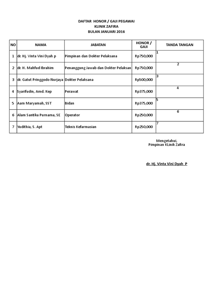Gaji Dokter Penanggung Jawab Klinik