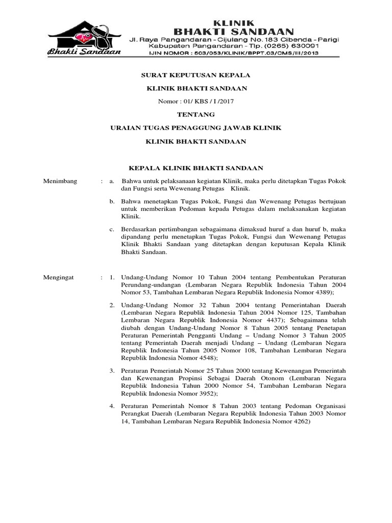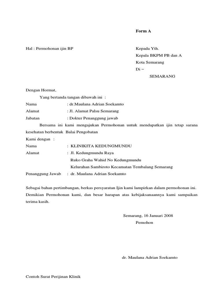 Contoh Surat Pernyataan Dokter Penanggung Jawab Klinik Kumpulan