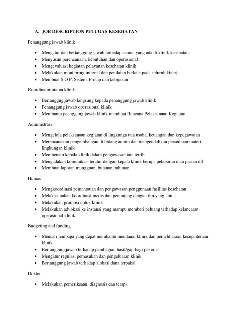 Job Description Petugas Kesehatan