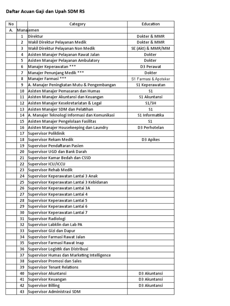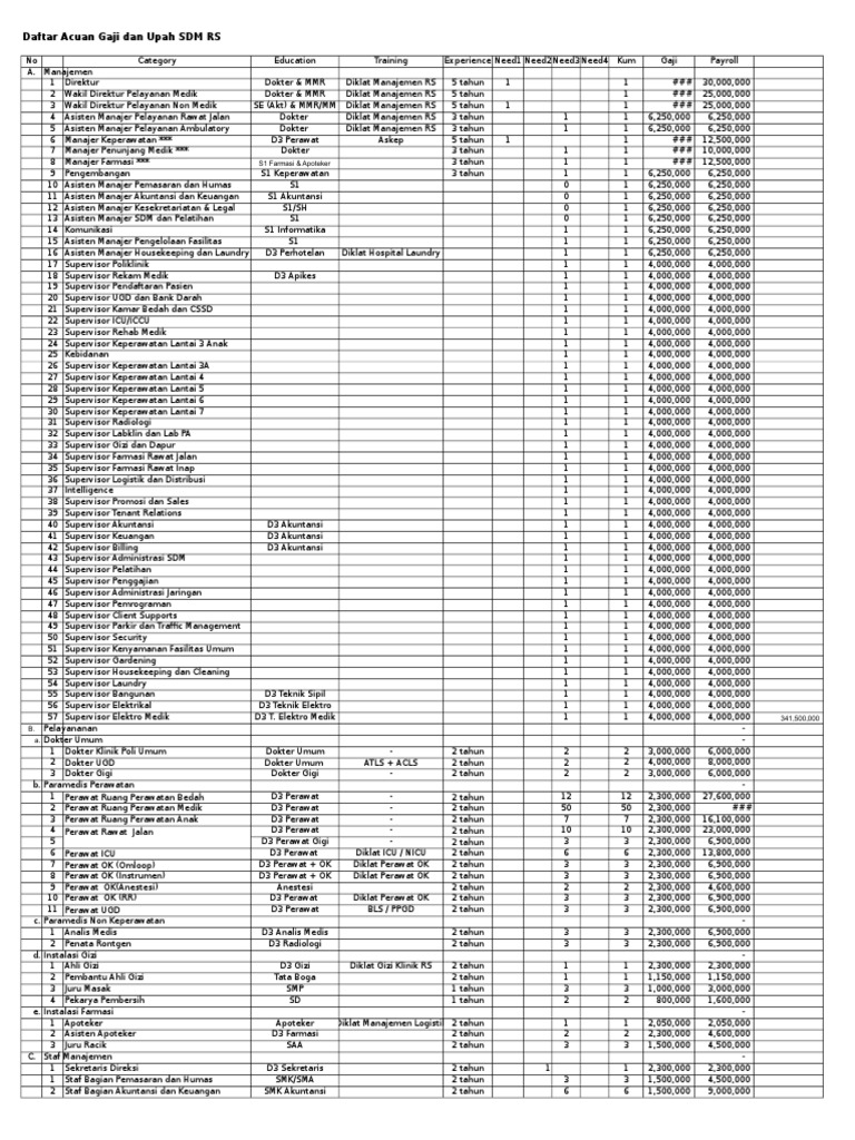 Daftar Acuan Gaji Dan Upah Sdm Rs