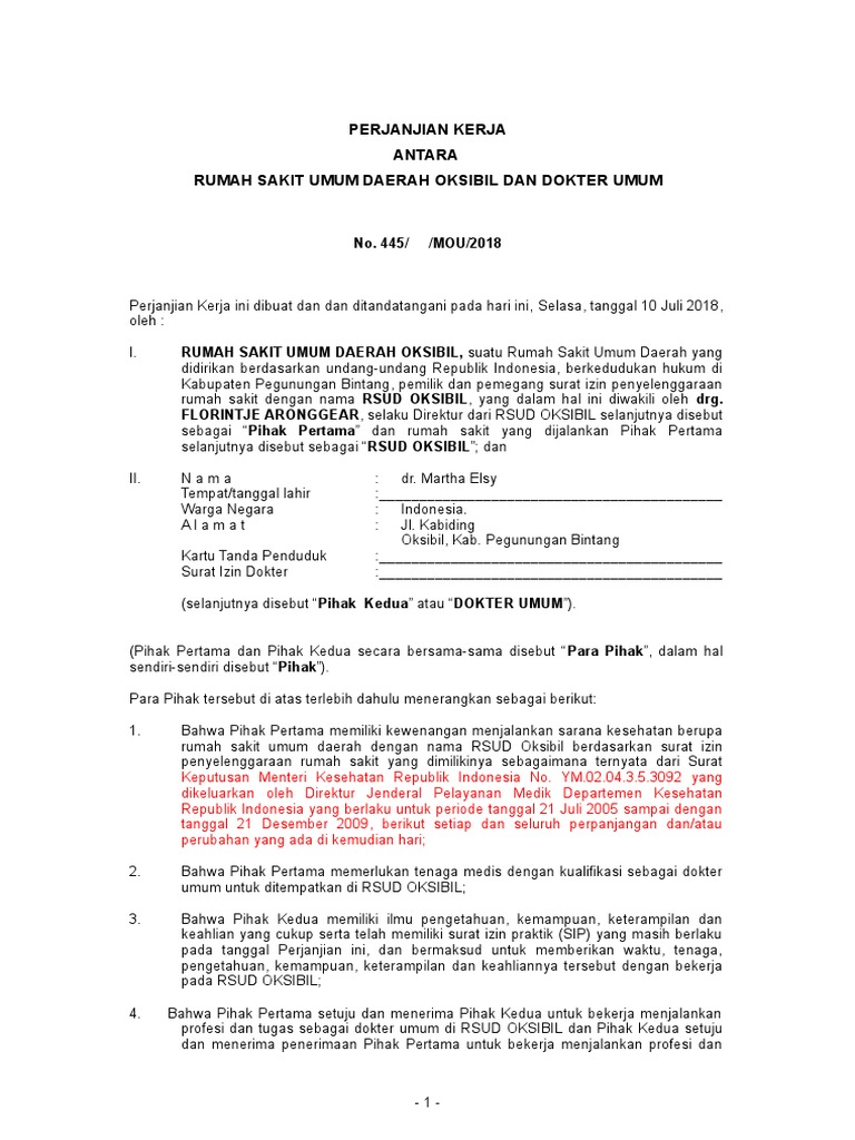Mou Dokter Umum Dengan Rsud Oksibil