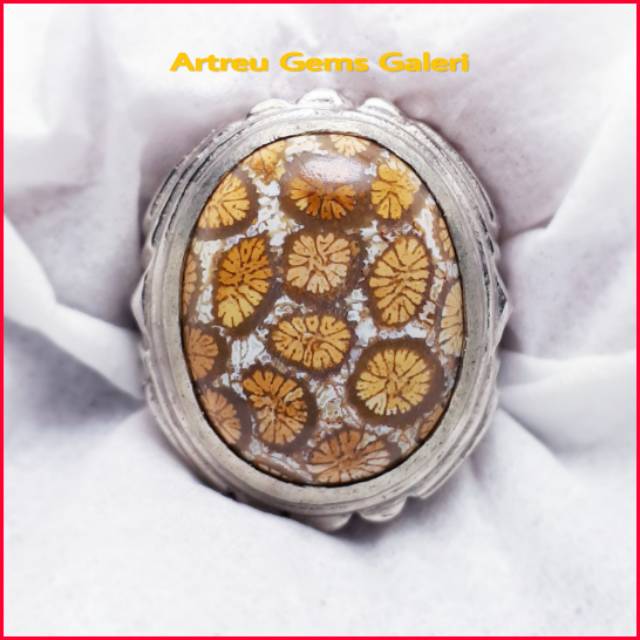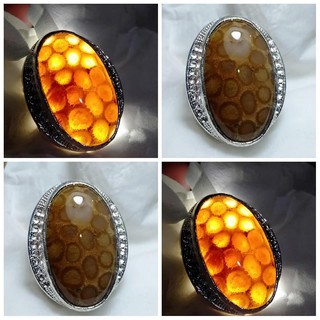 Akik Cincin Batu Teratai Dua Mata Fossil Coral Full Tembus Perhiasan 535604060