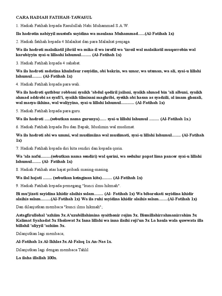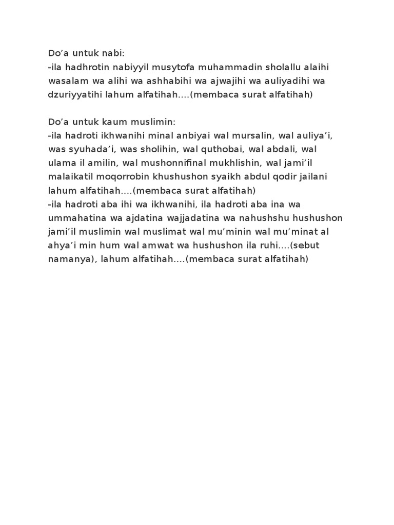 Doa Pembuka Untuk Kirim Al Fatihah Untuk Nabi Dan Lain2