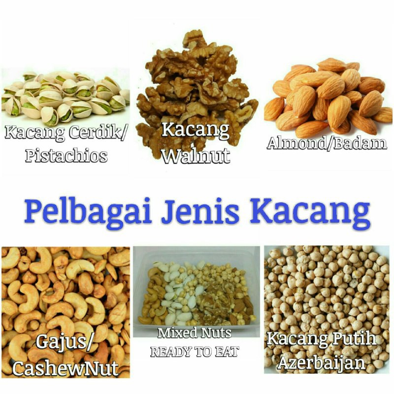 Ready To Eat Kacang Putih Mekah Walnut Gajus Cashewnut Badam