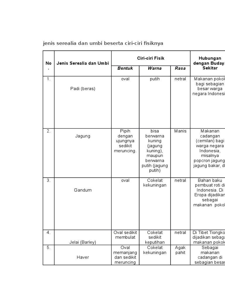 Ciri Fisik Umbi Dan Serealia Doc Document