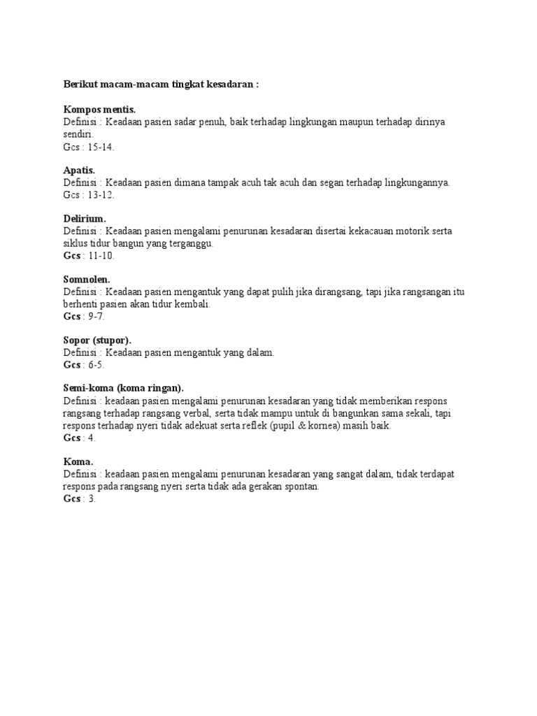 Doc Tingkat Kesadaran Macam Macam Tingkat Kesadaran Isyna