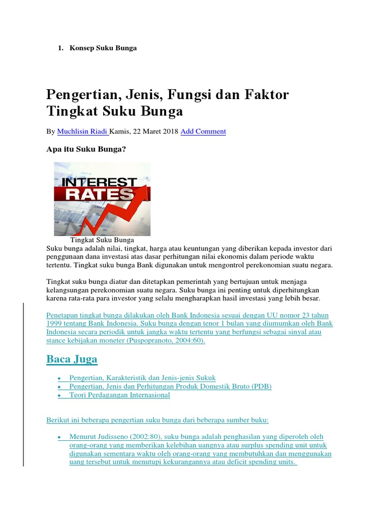 Pengertian Jenis Fungsi Dan Faktor Tingkat Suku Bunga