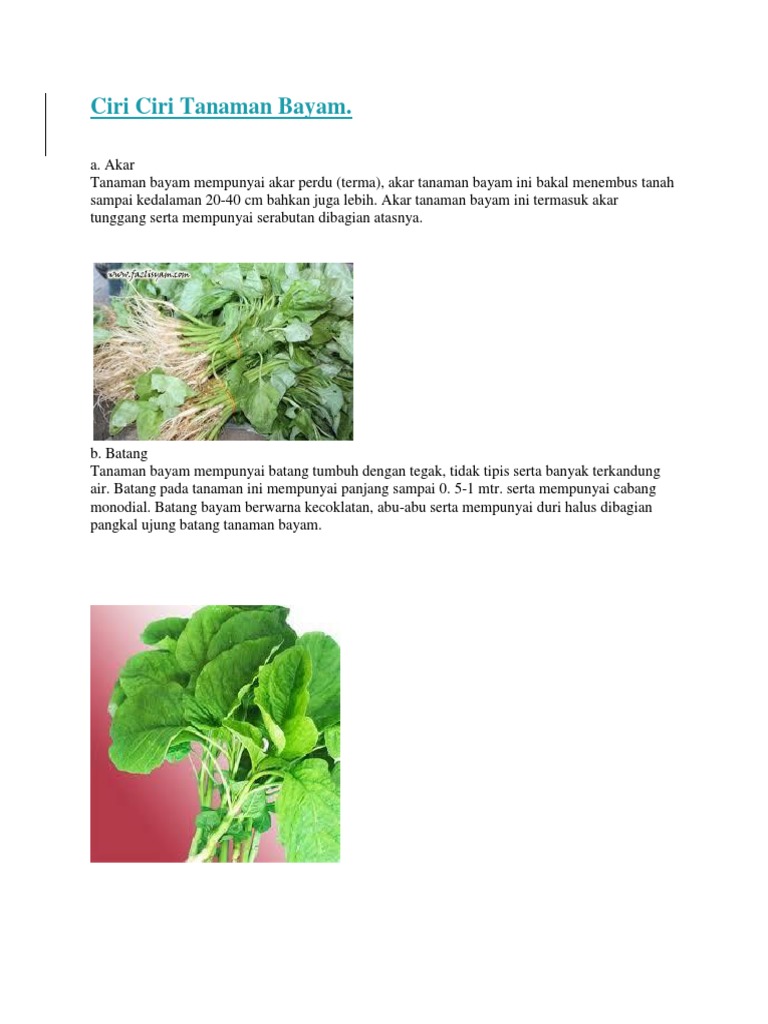 Ciri Ciri Tanaman Bayam