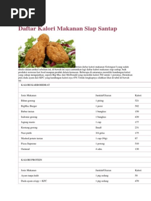 Daftar Kalori Makanan Siap