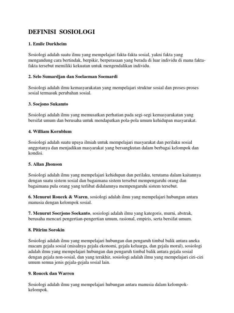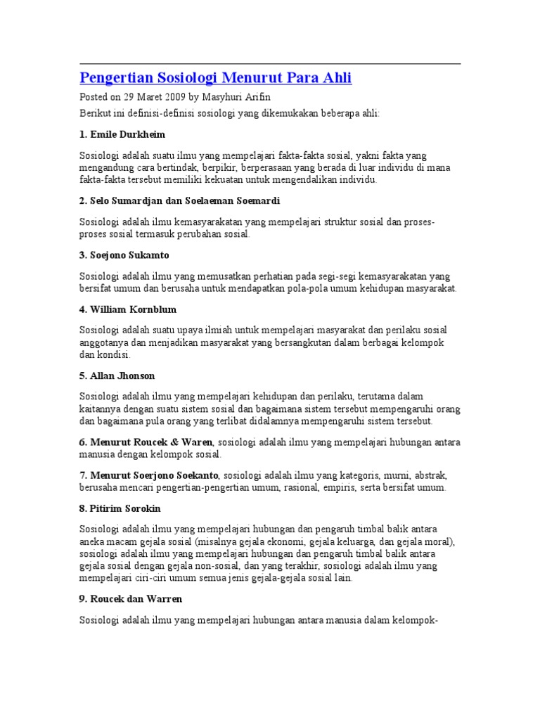 Hakikat Sosiologi Ciri Sifat Metode Dan Menurut Para Ahli