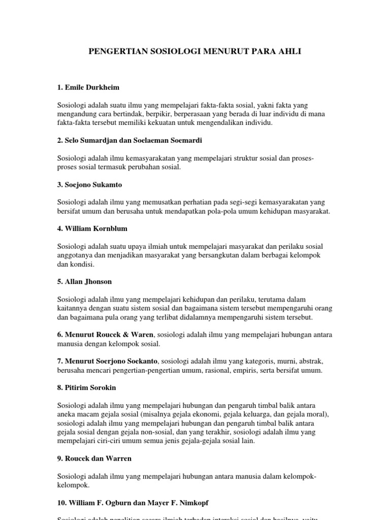 Pengertian Sosiologi Menurut Para Ahli