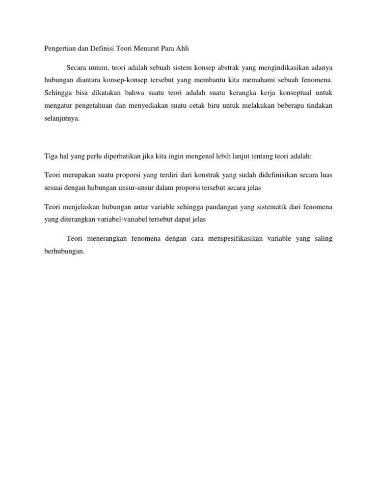 Pengertian Dan Definisi Teori Menurut Para Ahli