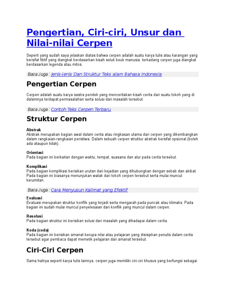 Pengertian Cerpen Struktur Unsur Ciri Ciri Dan Fungsinya