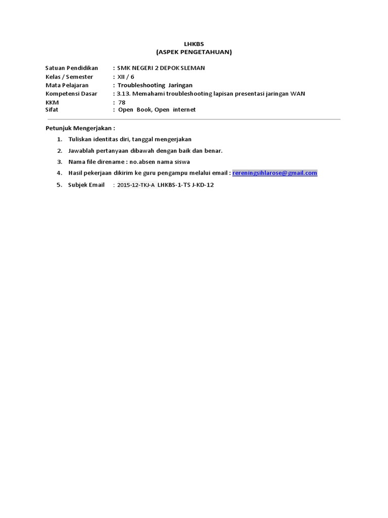 Troubleshooting Lapisan Presentasi Jaringan Lan Xii Tkj