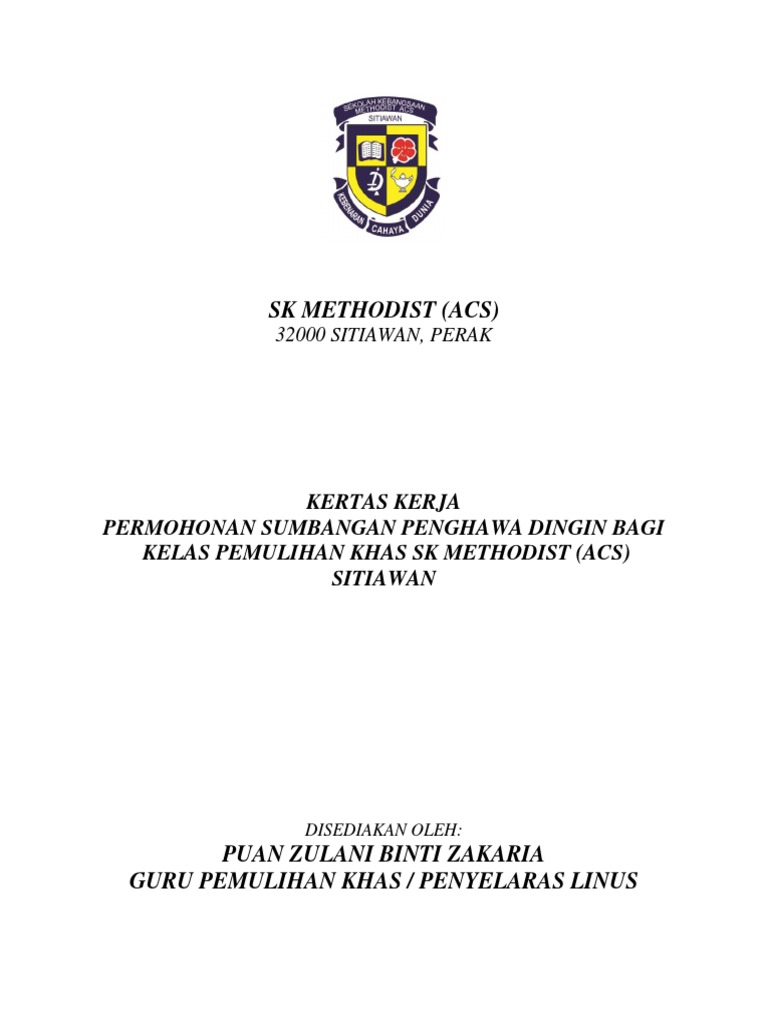 Kertas Kerja Permohonan Sumbangan Pendingin Hawa Untuk Kelas Pemulihan