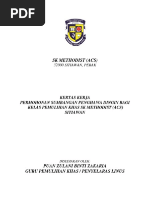 Kertas Kerja Permohonan Sumbangan Pendingin Hawa Untuk Kelas Pemulihan