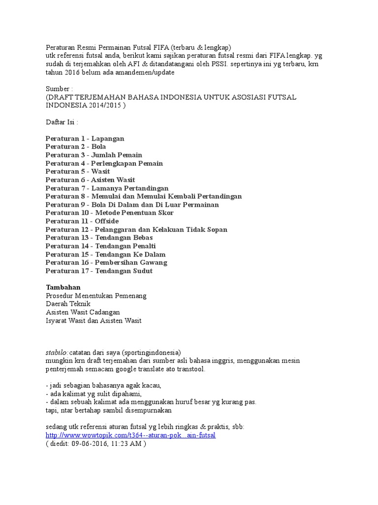 Peraturan Resmi Permainan Futsal Fifa Doc