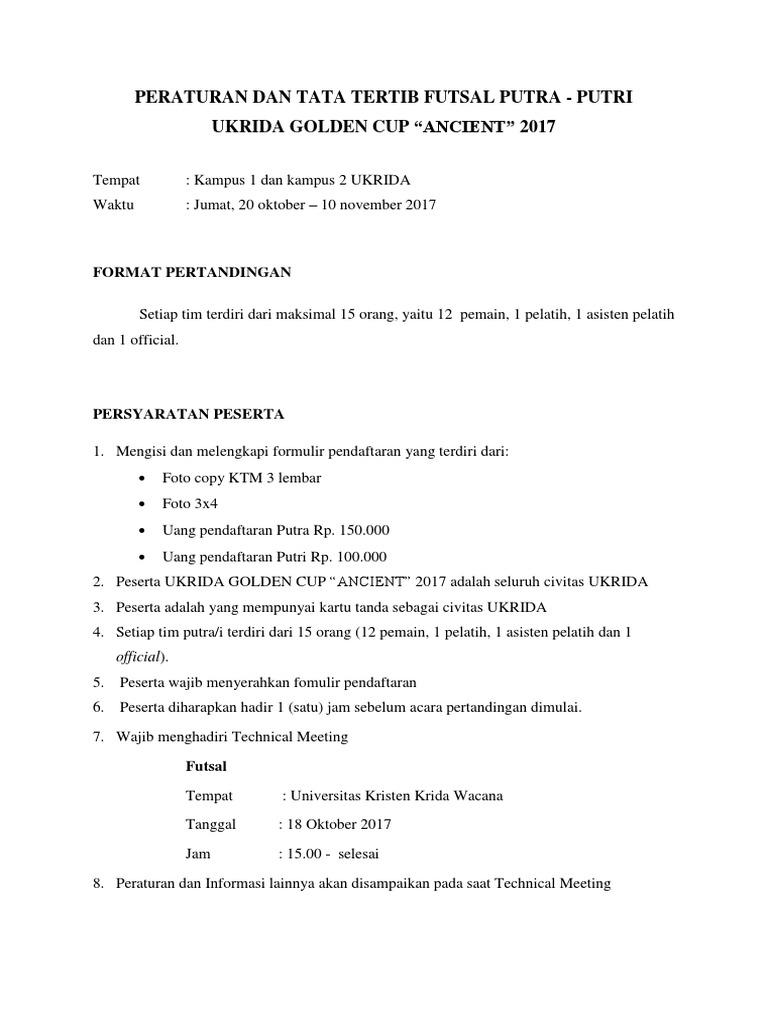 Peraturan Dan Tata Tertib Futsal Putra Dan Putri Ukrida