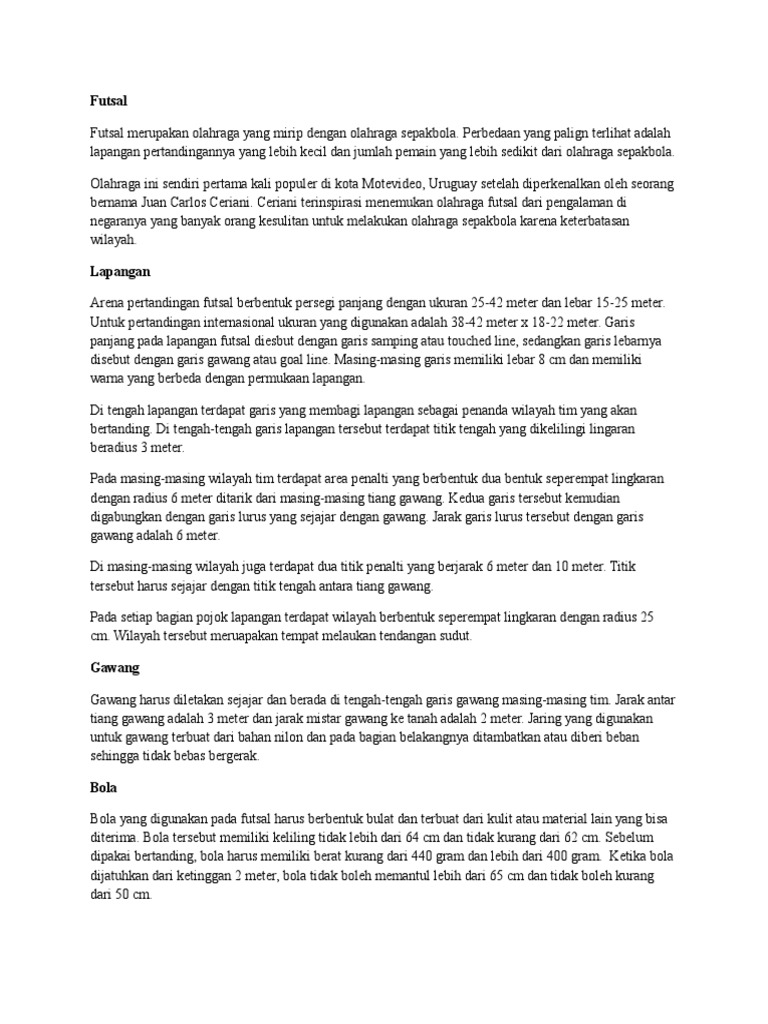 Peraturan Pertandingan Futsal 2015 Gendon Don Academia Edu