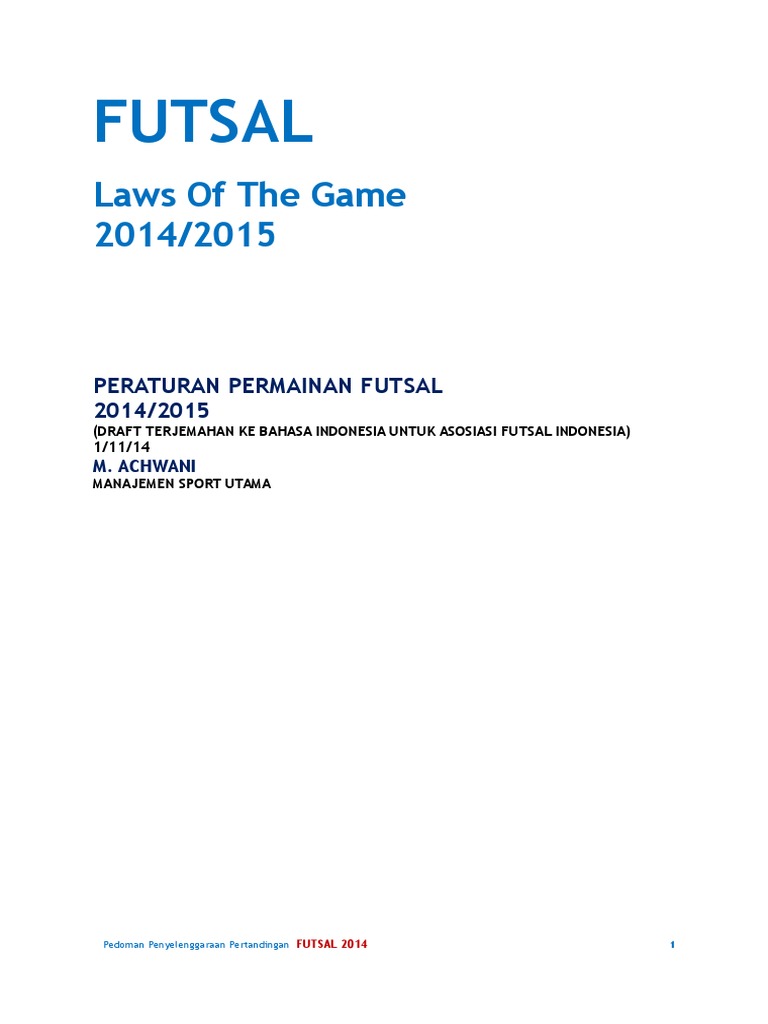 Pdf Peraturan Permainan Futsal Fifa Maharsadi Amarulaziz