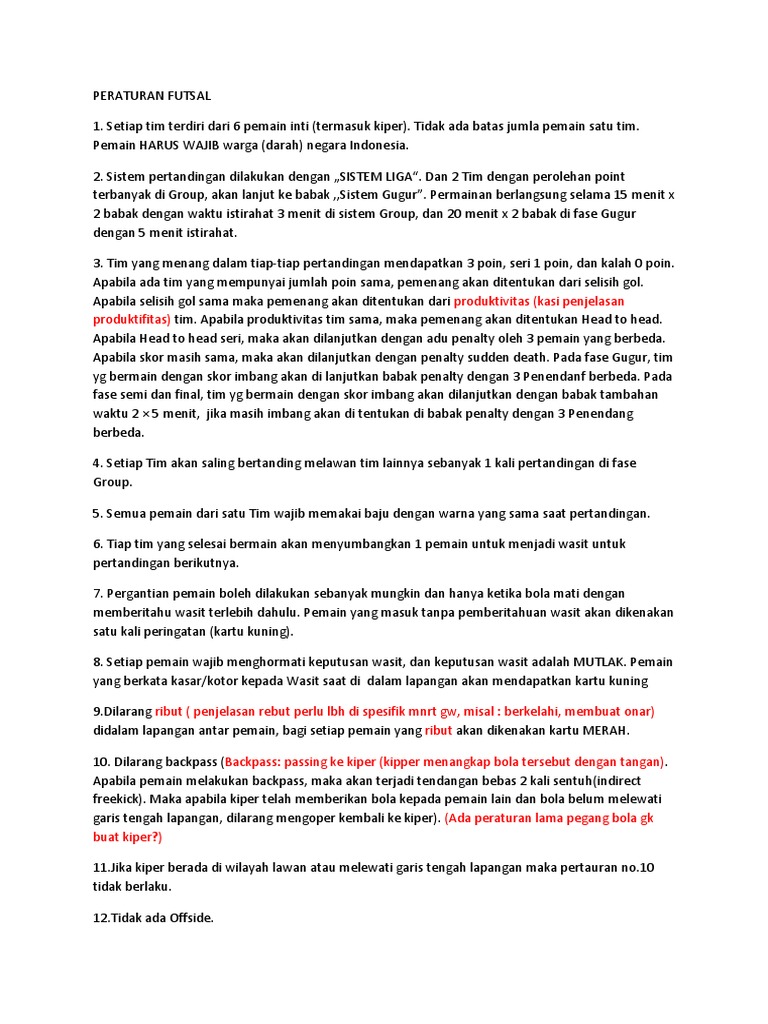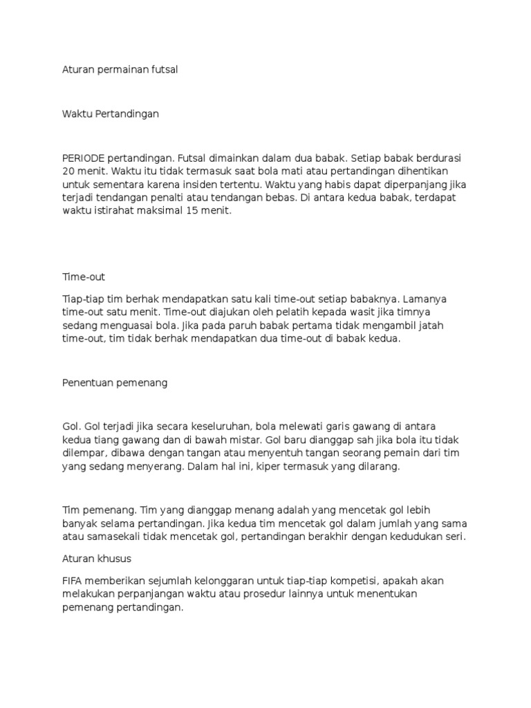 Peraturan Permainan Futsal Fifa Maleo Sport Centre Arena Olahraga Termodern Satu Satunya Di Kota Luwuk