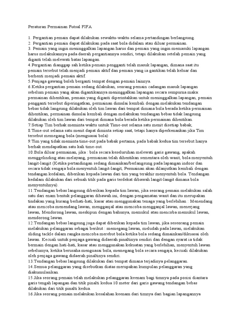 Peraturan Resmi Permainan Futsal Fifa Doc