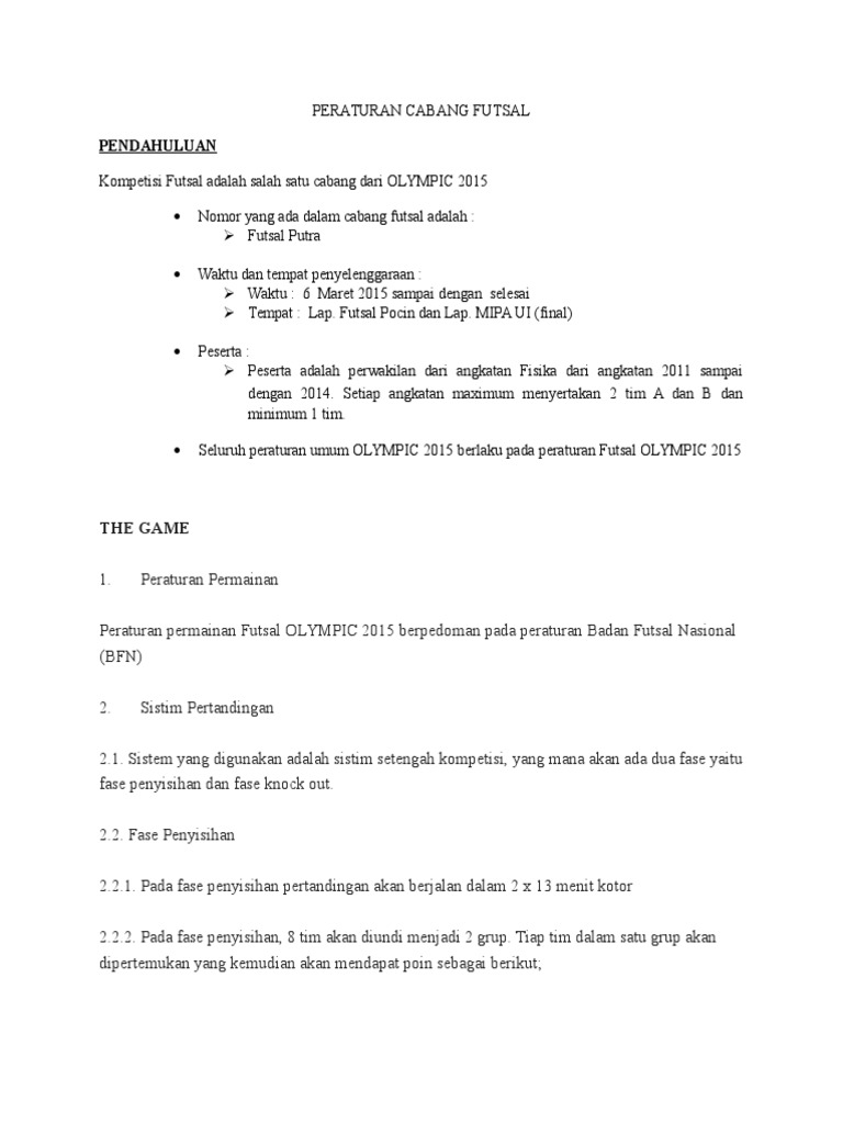 Doc Peraturan Khusus Futsal Bang Ndowek Academia Edu