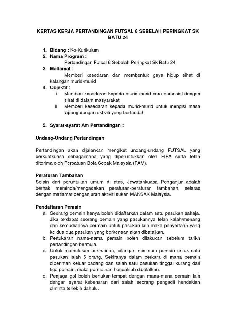 Peraturan futsal malaysia. Utk referensi futsal anda berikut kami sajikan peraturan futsal resmi dari fifa lengkap. Rangkuman peraturan olahraga peraturan sepak bola peraturan bulutangkis taekwondo tenis tinju angkat besi renang anggar bola voli karate futsal judo. Berikut adalah peraturan peraturan futsal yang digunapakai oleh sebarang pertandingan futsal di seluruh dunia. Selain malaysia beberapa negara asia tenggara lainnya juga mulai mengenal olahraga sepak takraw tepatnya pada tahun 1940 an.