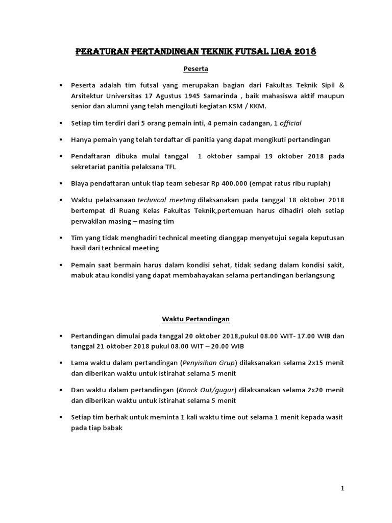 Contoh Peraturan Pertandingan Kompetisi Futsal Kabar Sport