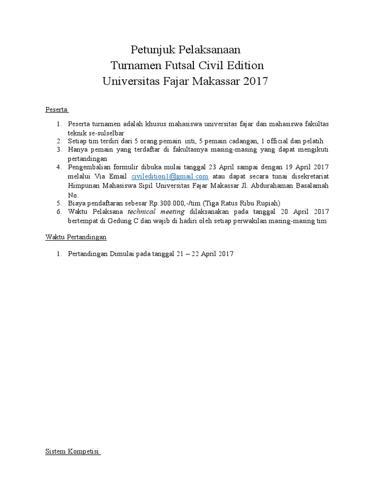 Peraturan Pertandingan Turnamen Futsal Civil Edition 2017