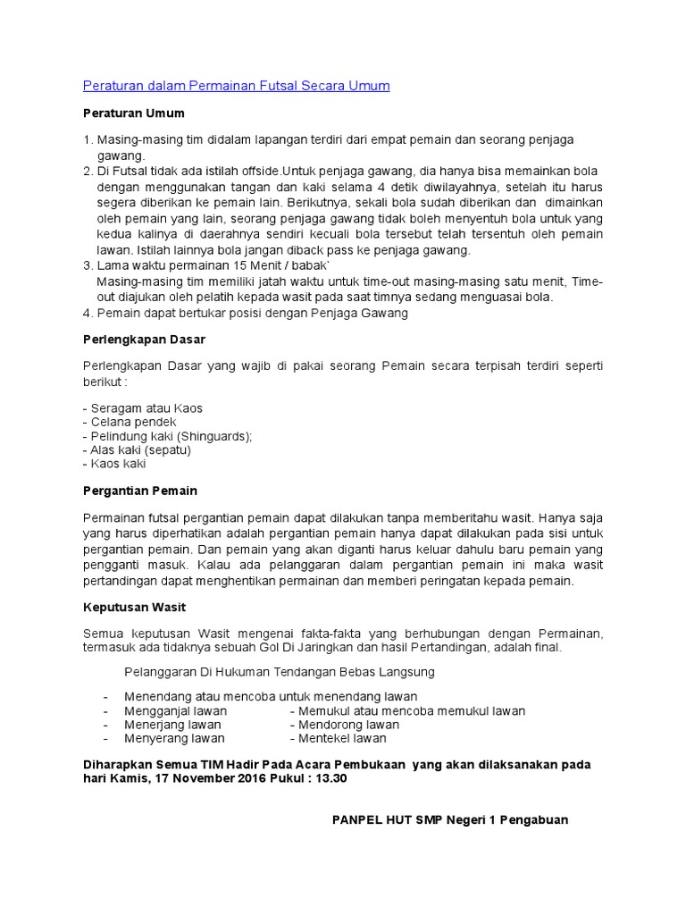 Tata Tertib Peraturan Futsal Docx