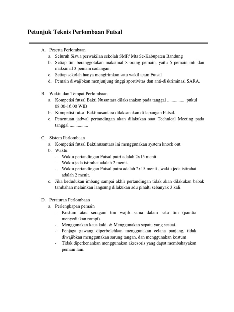 Juknis Perlombaan Futsal