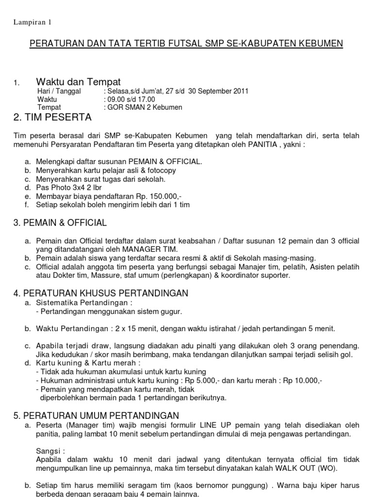 Tata Tertib Peraturan Futsal Docx