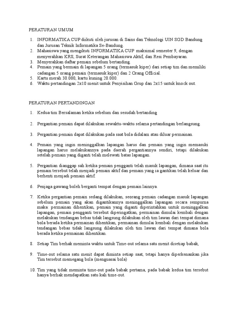Contoh Peraturan Futsal Resmi