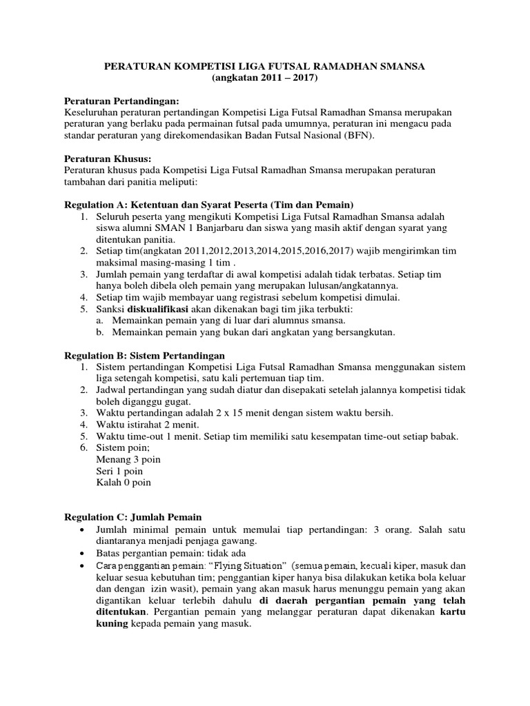 Peraturan Kompetisi Liga Futsal Ramadhan Smansa