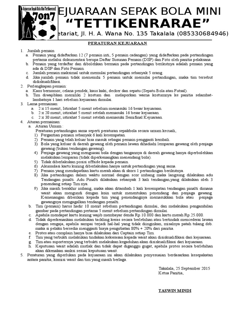 Contoh Peraturan Pertandingan Sepak Bola Mini