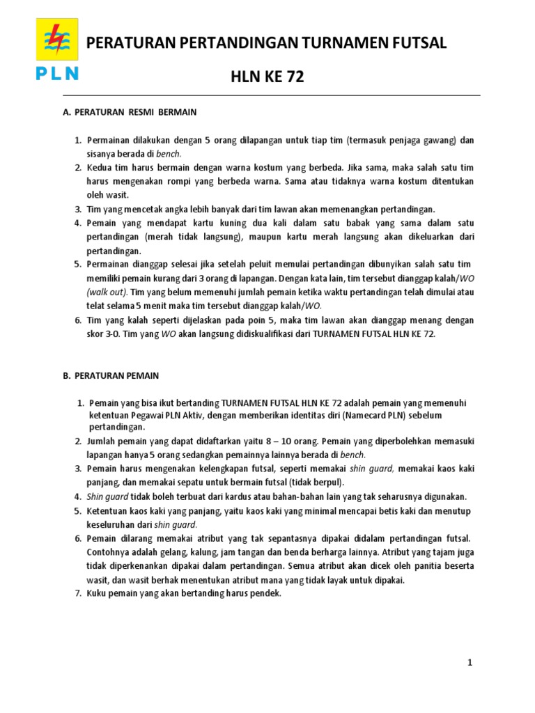 Tata Tertib Peraturan Futsal Docx